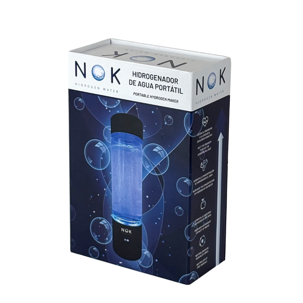 NOK est notre générateur d'hydrogène portable de dernière génération, conçu pour vous accompagner tout au long de la journée afin de respecter la dose quotidienne recommandée et profiter de ses nombreux bienfaits antioxydants. Le générateur NOK produit de l'hydrogène moléculaire qui n'altère ni le goût ni la composition de l'eau, renforçant ainsi sa fraîcheur.-----